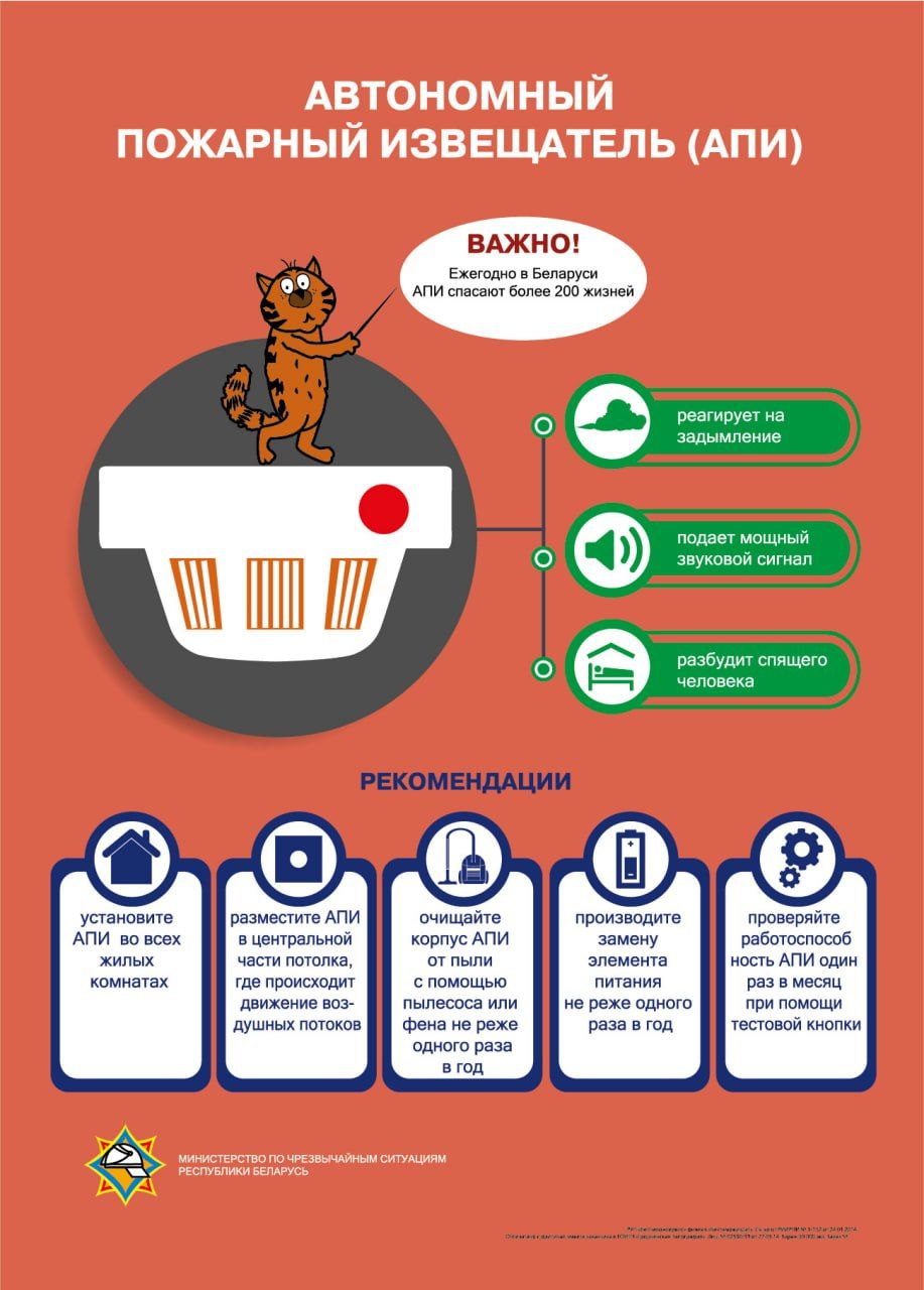 В целях усиления мер по предупреждению гибели и травматизма людей от пожаров в быту в период с 24 ноября по 14 декабря текущего года МЧС проводит информационную кампанию среди населения об эффективности автономных пожарных извещателей, необходимости их установки и своевременного обслуживания.